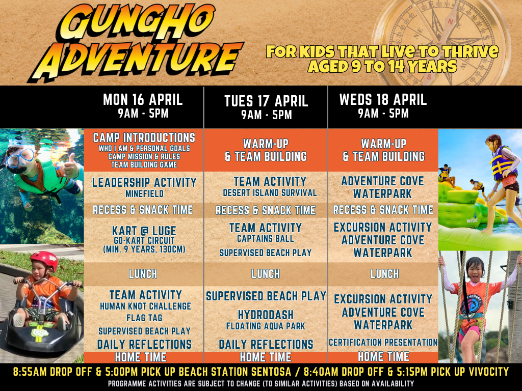 2. Exceptions: If the child has incurred an injury (supported by doctor’s note) or is relocating from Singapore (supported by documentation), the camp fee will be refunded minus any third party transaction fees (credit card or bank transfer charges) as well as administrative costs incurred by prepaid purchases such as meals and excursion costs.